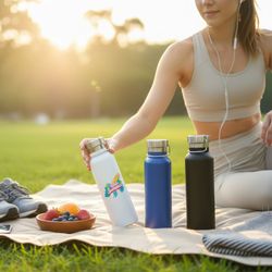 No matter where you find yourself, stay still and hydrated with our custom water bottles. Designed with a screw-on cap, our bottles are spillage free, so you can bring them anywhere you go.